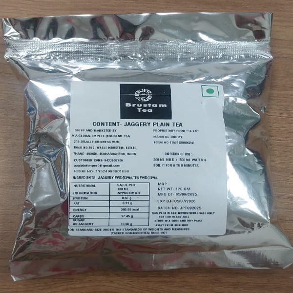 Brustam Horeca Special Jaggery Tea is specially developed for hotels, restaurants, and catering services.The pre-blended formulation of black tea powder and natural jaggery ensures consistent taste and eliminates the need for adding sugar during preparation.Each 120 gm pouch is designed to prepare one liter of tea, making bulk preparation simple, efficient, and standardized for HORECA operations.